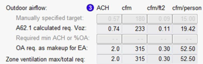· Primary air-change requirement, per settings in the Zone Ventilation & Exhaust tab